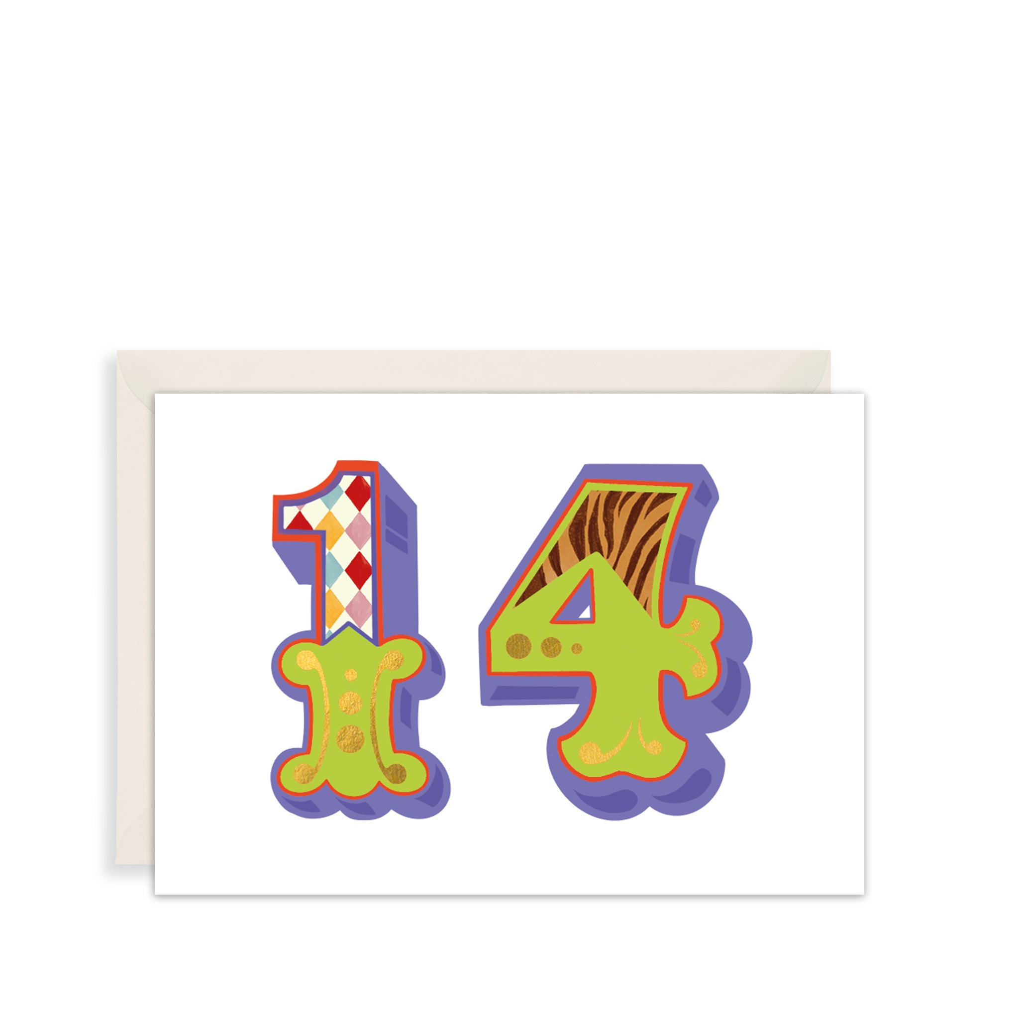 Make someone smile with this lovely age card. This card features the number 14 displayed in an bold design.