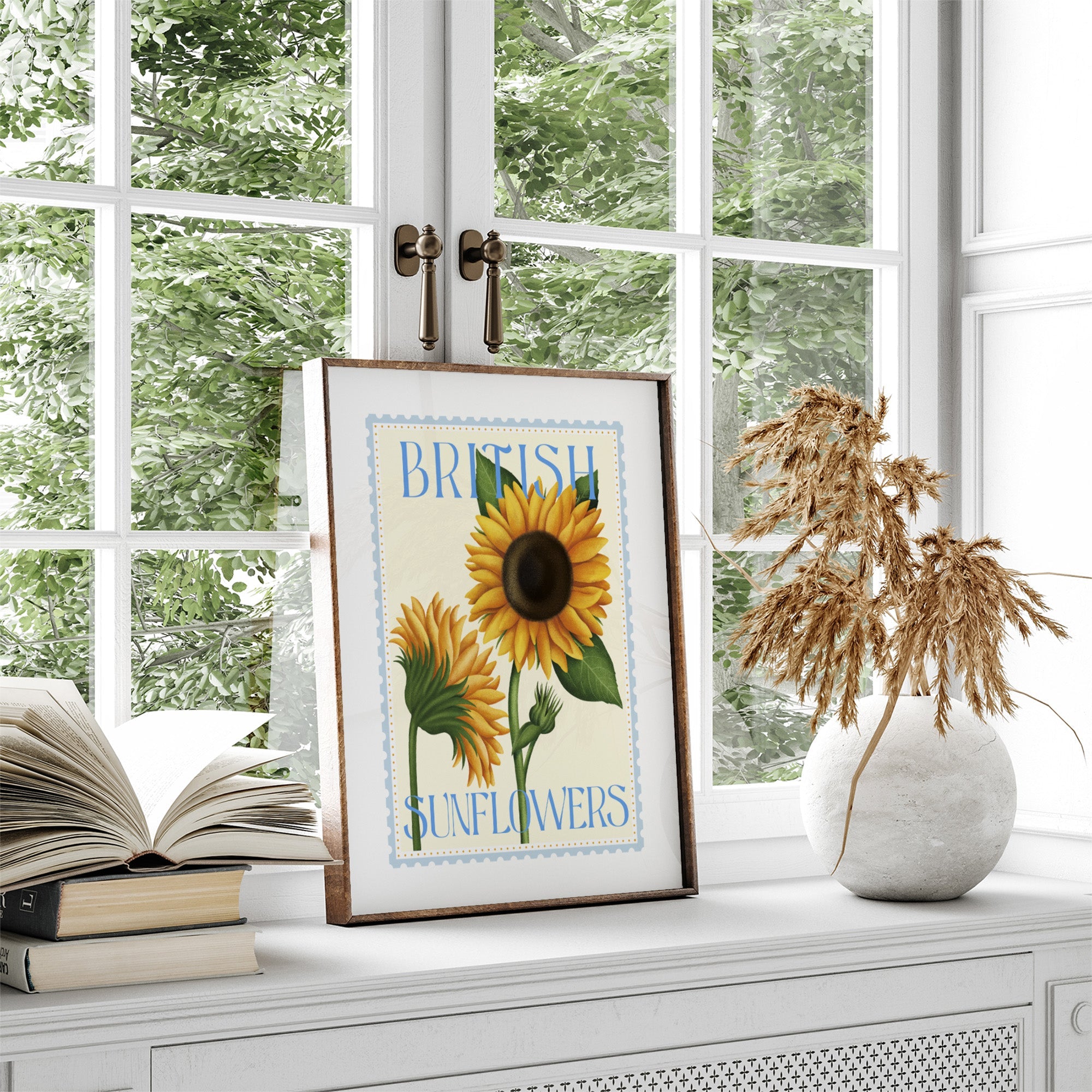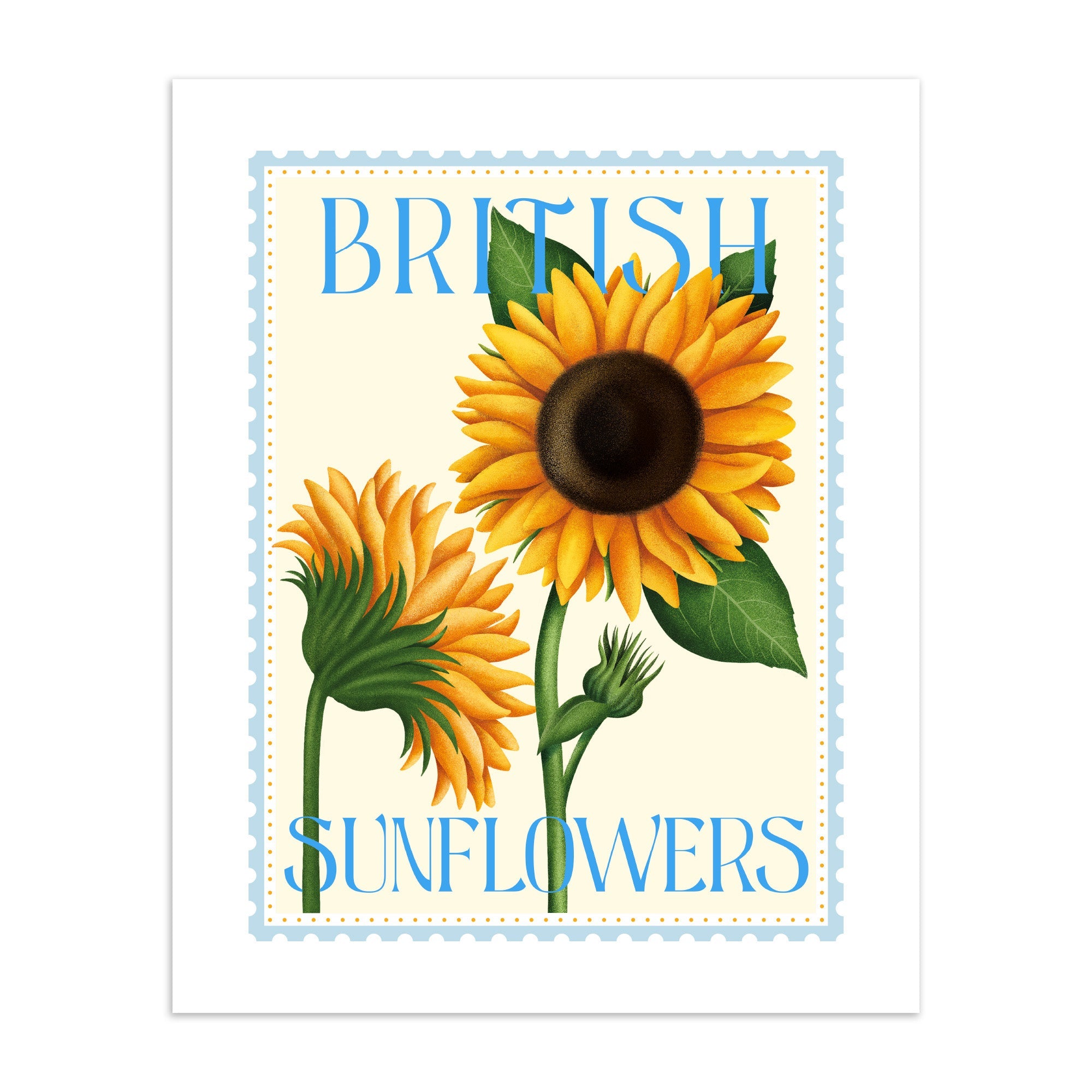 This lovely art print features beautiful British sunflowers in full bloom, paired with the bold typography. 'British Sunflowers' is part of our Colour Burst collection, a series of botanical art prints.
