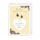 Say congratulations to the happy couple with this adorable wedding card. This beautiful card features two giraffes kissing and reads 'On your wedding day, happily ever grafter'.