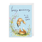 Say happy anniversary with this adorably cute card. This beautiful card features two foxes playing together and reads 'Happy anniversary to my whole world'.