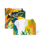 Say happy birthday to someone special with this gorgeous 3D card. This card features a jungle scene filled with tropical animals. It reads 'Happy birthday'.