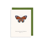 Put a smile on someone's face with this detailed card. This stunning card features a detailed illustration of a peacock butterfly, with the English and Latin titles detailed below. The card reads 'Peacock Butterfly, Aglais io'.